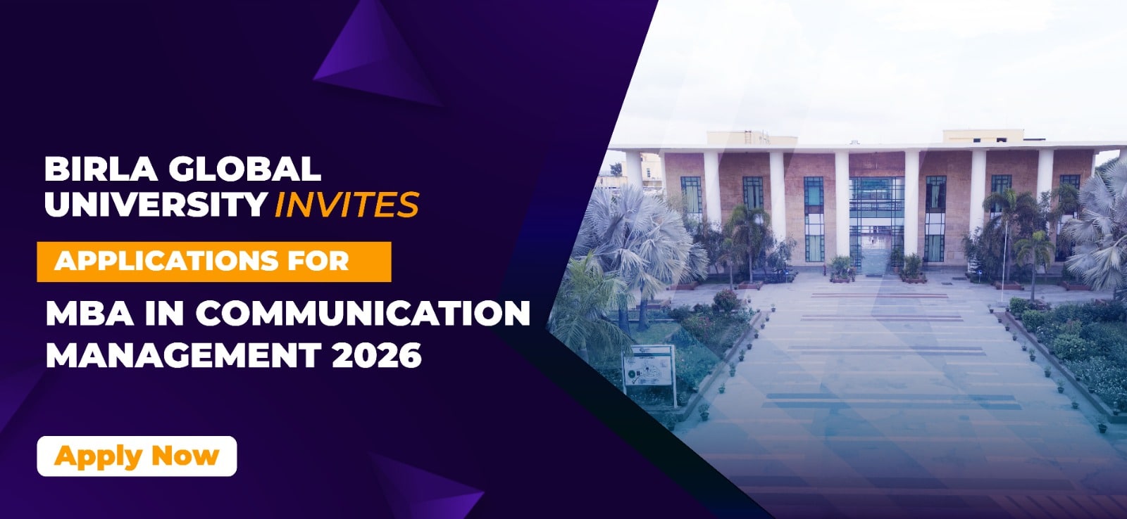 Birla Global University (BGU), a premier university from B.K Birla Group, invites applications for 2026–28 batch of its MBA in Communication Management programme. The program responds to the strong industry demand for skilled communication managers across corpor...