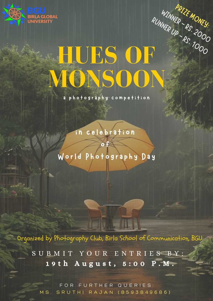 To celebrate World Photography Day, the club conducted a photography competition on the theme ‘Hues of Monsoon.’ The event saw enthusiastic participation from 45 students across various schools of Birla Global University, highlighting their creative interpretation of the season’s vibrant palette.